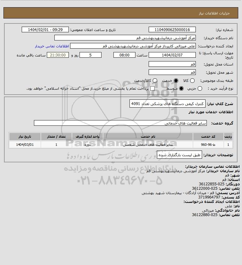 شرح کلی نیاز: کنترل کیفی دستگاه های پزشکی تعداد 4091