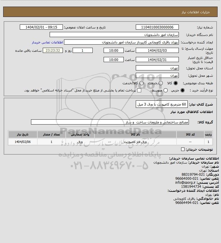 نام دستگاه خریدار:سازمان امور دانشجویان