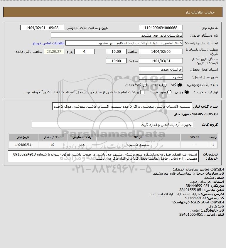 نام دستگاه خریدار:بیمارستان قایم عج مشهد