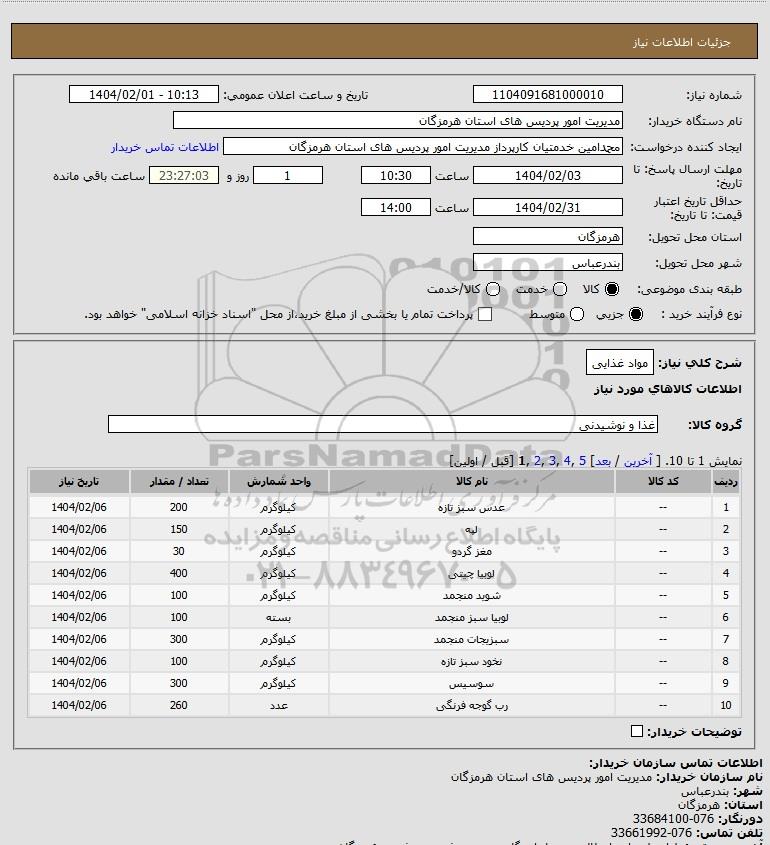شرح کلی نیاز: مواد غذایی