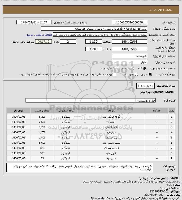 شرح کلی نیاز: تره باردرجه 1
