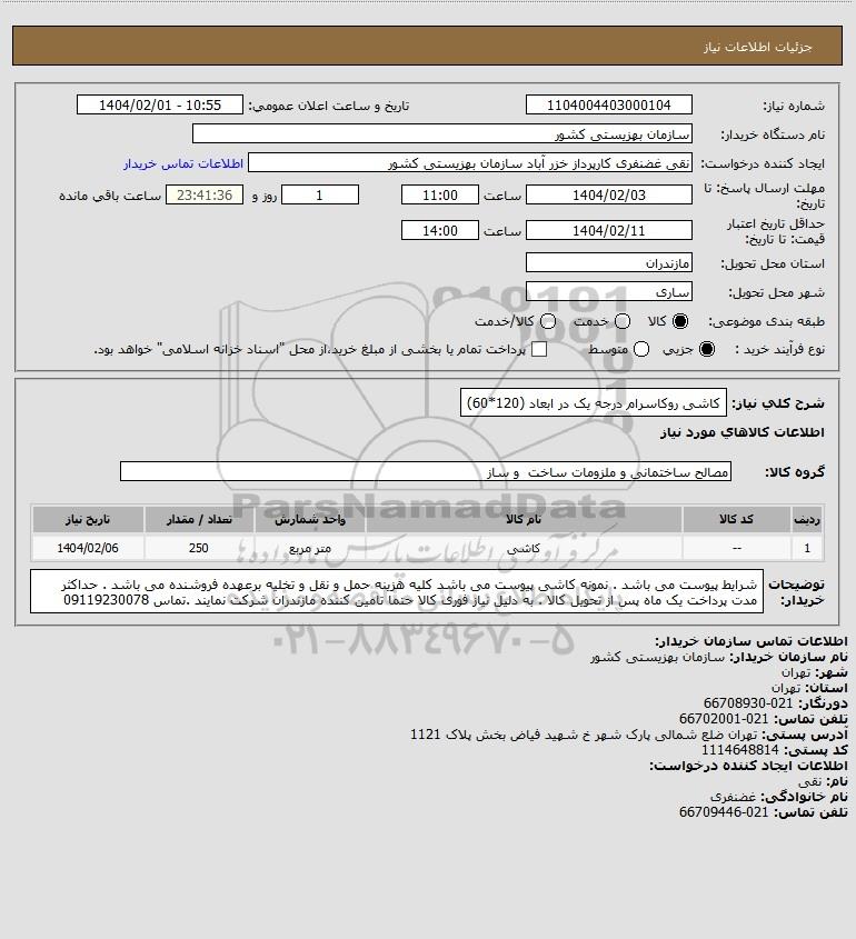 شرح کلی نیاز: کاشی روکاسرام درجه یک در ابعاد (120*60)