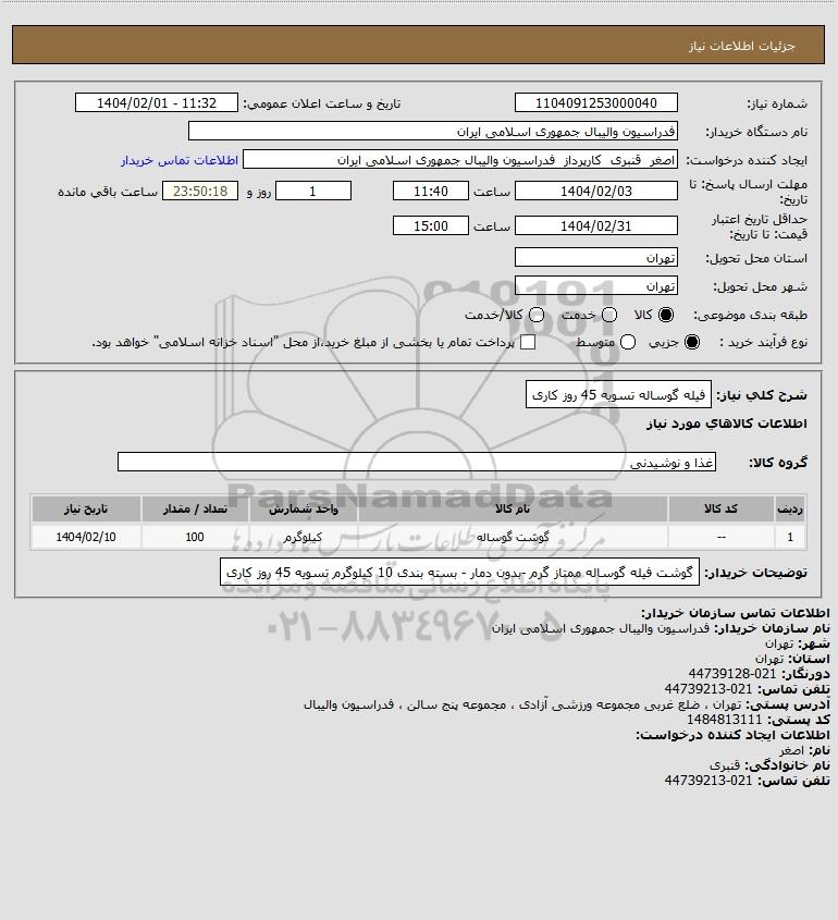 | 1 | -- | گوشت گوساله | کیلوگرم | 100 | 1404/02/10 |