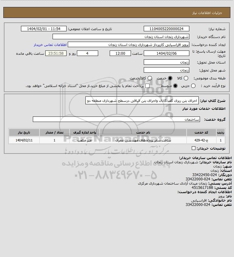 شرح کلی نیاز: اجرای بتن ریزی کف کانال واجرای بتن الیافی درسطح شهرداری منطقه دو