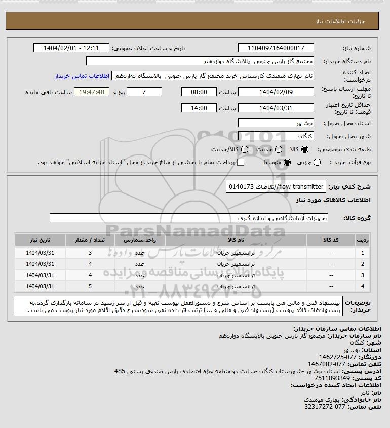 شرح کلی نیاز: flow transmitter//تقاضای 0140173