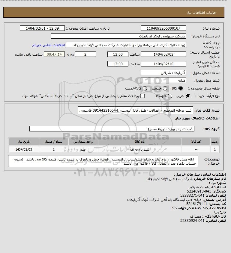 | 1 | -- | شیر پروانه ای | عدد | 1 | 1404/02/03 |