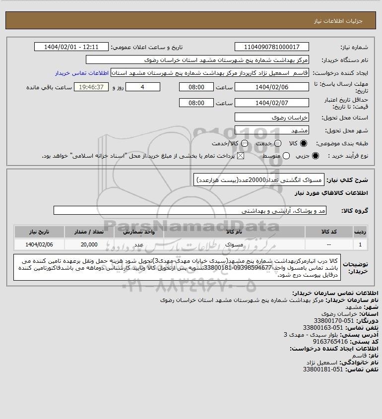 استعلام مسواک انگشتی تعداد20000عدد(بیست هزارعدد), استعلام مسواک انگشتی تعداد20000عدد(بیست هزارعدد)