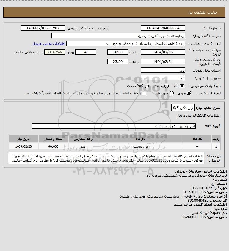 | 1 | -- | وایر ارتودنسی | عدد | 40,000 | 1404/02/20 |
