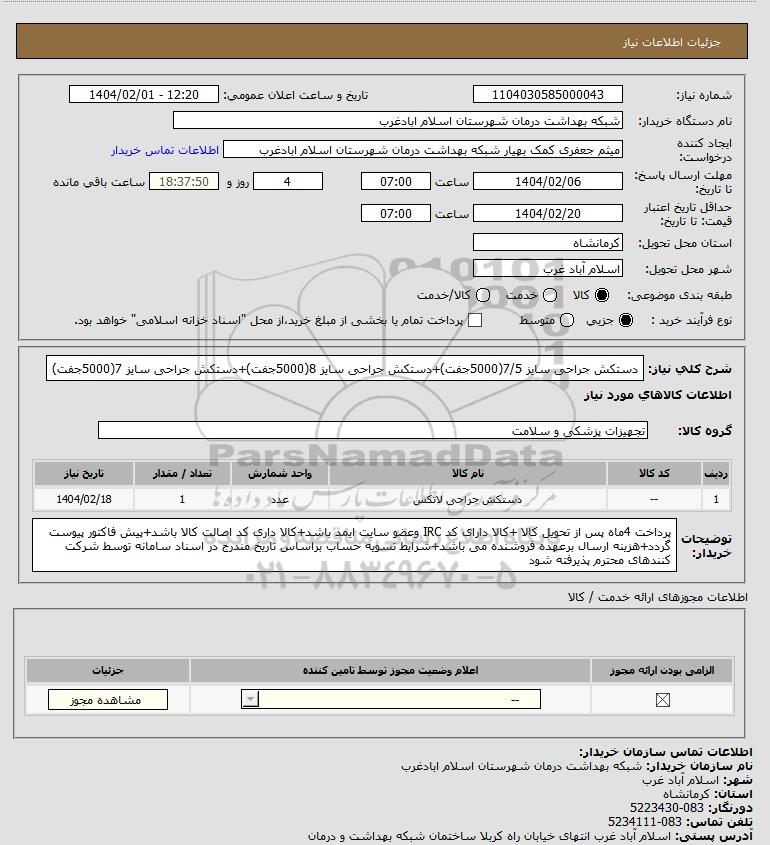 نام دستگاه خریدار:شبکه بهداشت درمان شهرستان اسلام ابادغرب
