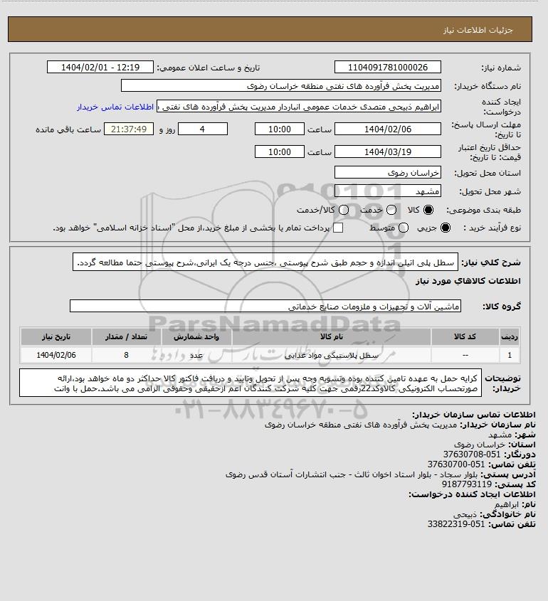 نام دستگاه خریدار:مدیریت پخش فرآورده های نفتی منطقه خراسان رضوی