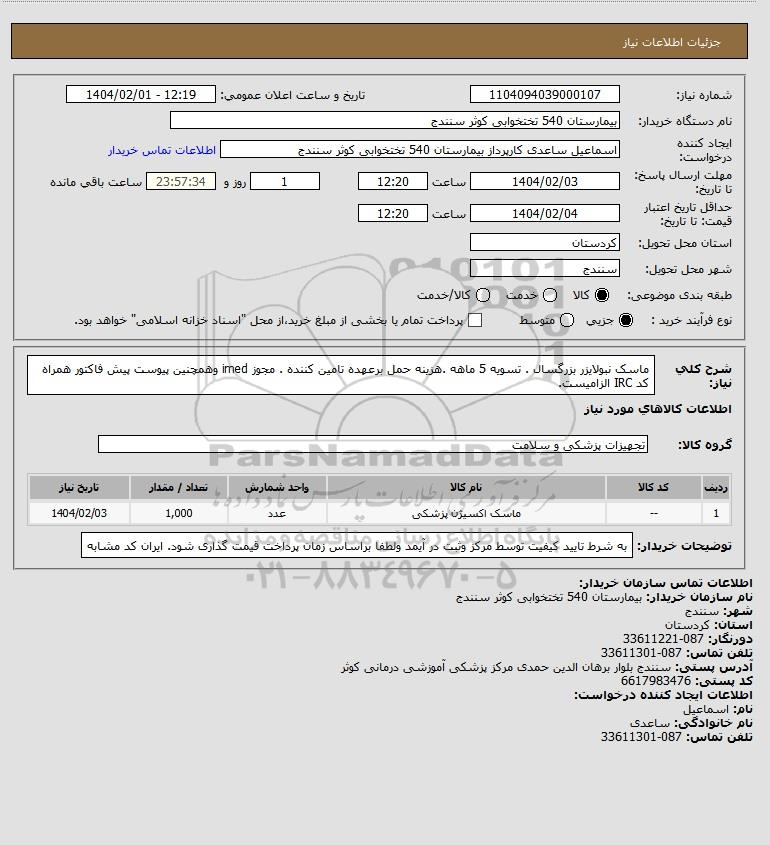 شماره نیاز: 1104094039000107