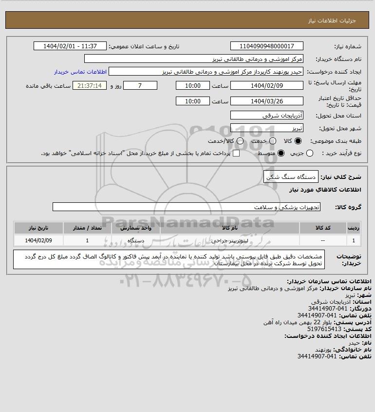 نام دستگاه خریدار:مرکز اموزشی و درمانی طالقانی تبریز