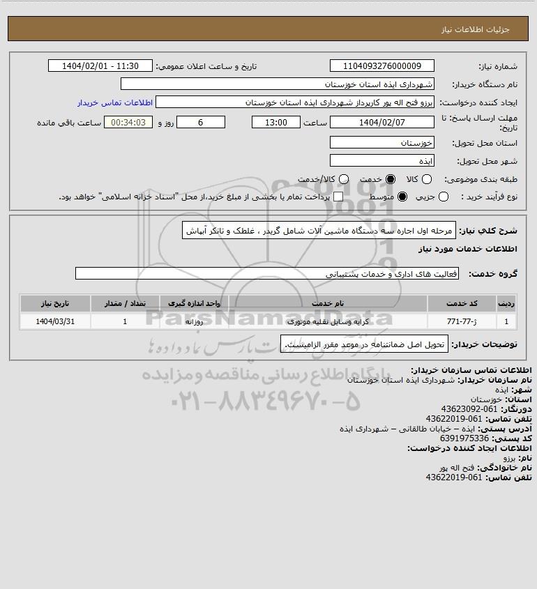 نام دستگاه خریدار:شهرداری ایذه استان خوزستان