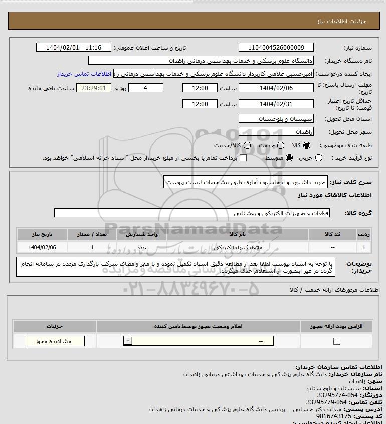 نام دستگاه خریدار:دانشگاه علوم پزشکی و خدمات بهداشتی درمانی زاهدان