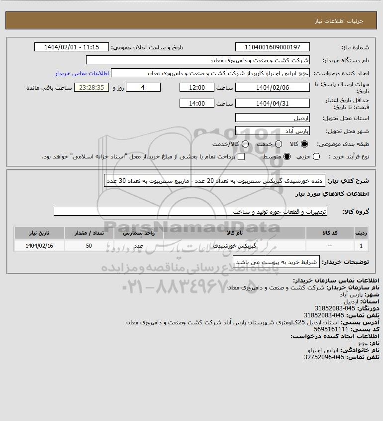نام دستگاه خریدار:شرکت کشت و صنعت و دامپروری مغان