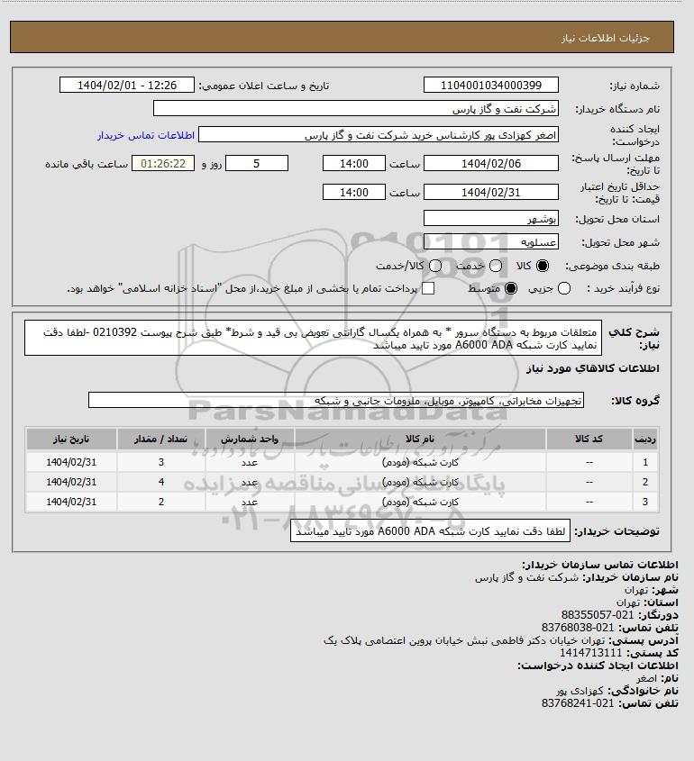 | 2 | -- | کارت شبکه (مودم) | عدد | 4 | 1404/02/31 |