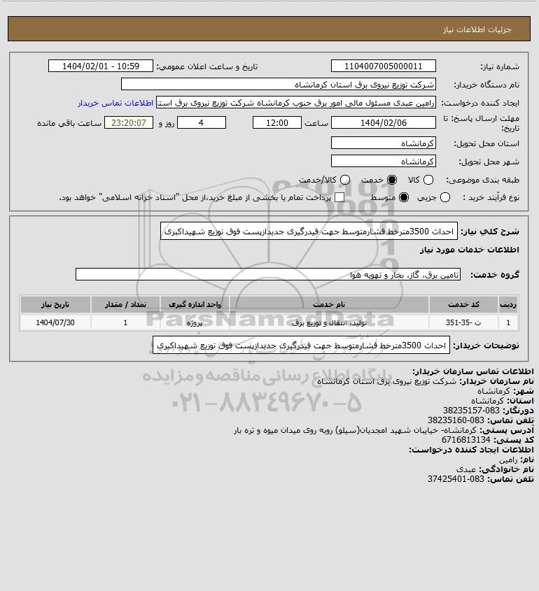 توضیحات خریدار:احداث 3500مترخط فشارمتوسط جهت فیدرگیری جدیدازپست فوق توزیع شهیداکبری