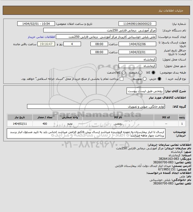 شرح کلی نیاز: روتختی طبق لیست پیوست