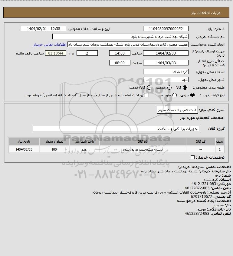 نام دستگاه خریدار:شبکه بهداشت درمان شهرستان پاوه