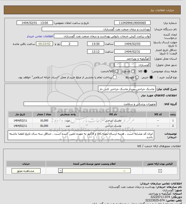 | 2 | -- | ماسک جراحی | عدد | 30,000 | 1404/02/11 |