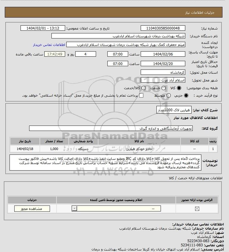نام دستگاه خریدار:شبکه بهداشت درمان شهرستان اسلام ابادغرب