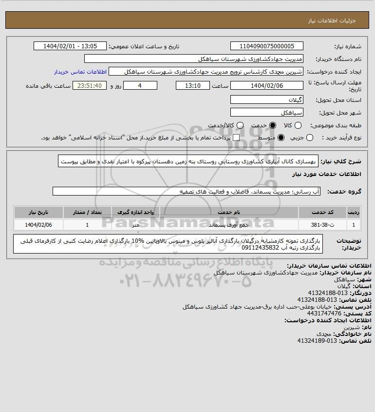 نام سازمان خریدار: مدیریت جهادکشاورزی شهرستان سیاهکل