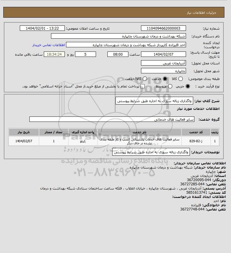 نام دستگاه خریدار:شبکه بهداشت و درمان شهرستان چایپاره