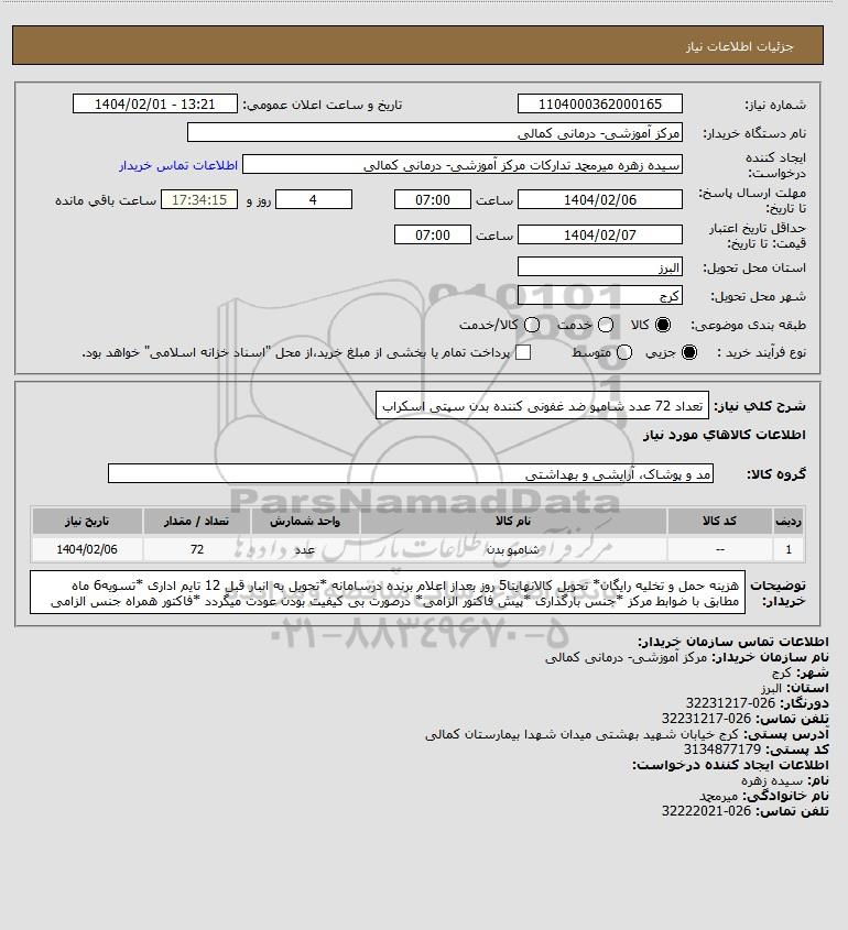 نام دستگاه خریدار:مرکز آموزشی- درمانی کمالی