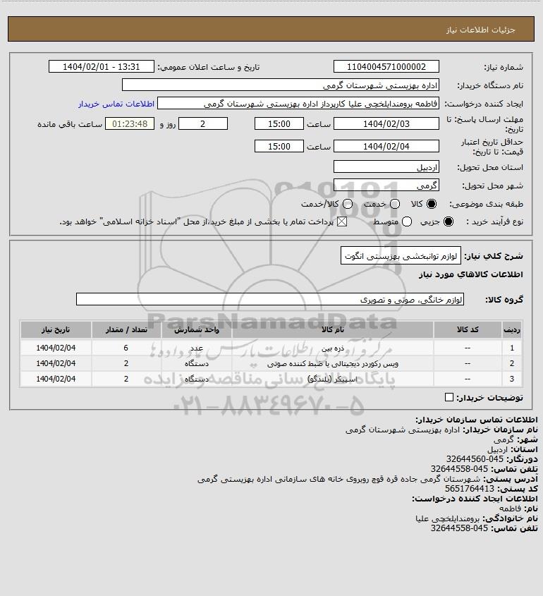 | 2 | -- | ویس رکوردر دیجیتالی یا ضبط کننده صوتی | دستگاه | 2 | 1404/02/04 |
