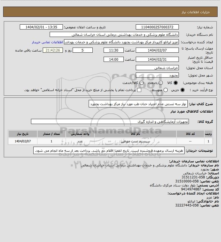 نام دستگاه خریدار:دانشگاه علوم پزشکی و خدمات بهداشتی درمانی استان خراسان شمالی