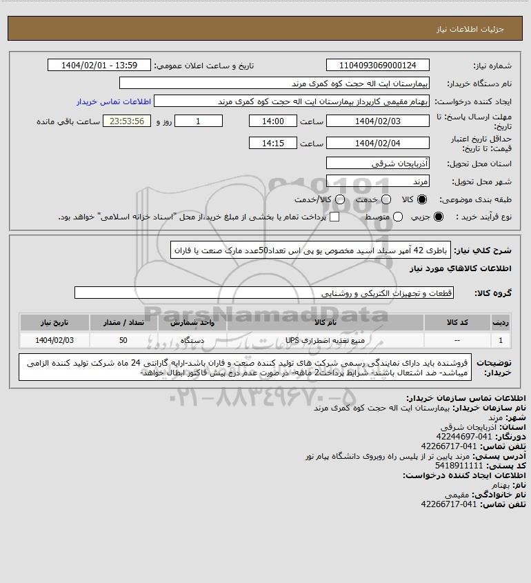 استعلام باطری 42 آمپر سیلد اسید مخصوص یو پی اس تعداد50عدد مارک صنعت یا فاران, استعلام باطری 42 آمپر سیلد اسید مخصوص یو پی اس تعداد50عدد مارک صنعت یا فاران