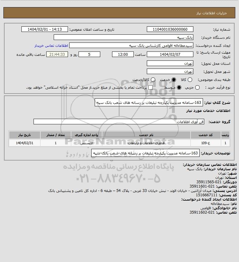 توضیحات خریدار:163-سامانه مدیریت یکپارچه تبلیغات بر رسانه های شعب بانک سپه