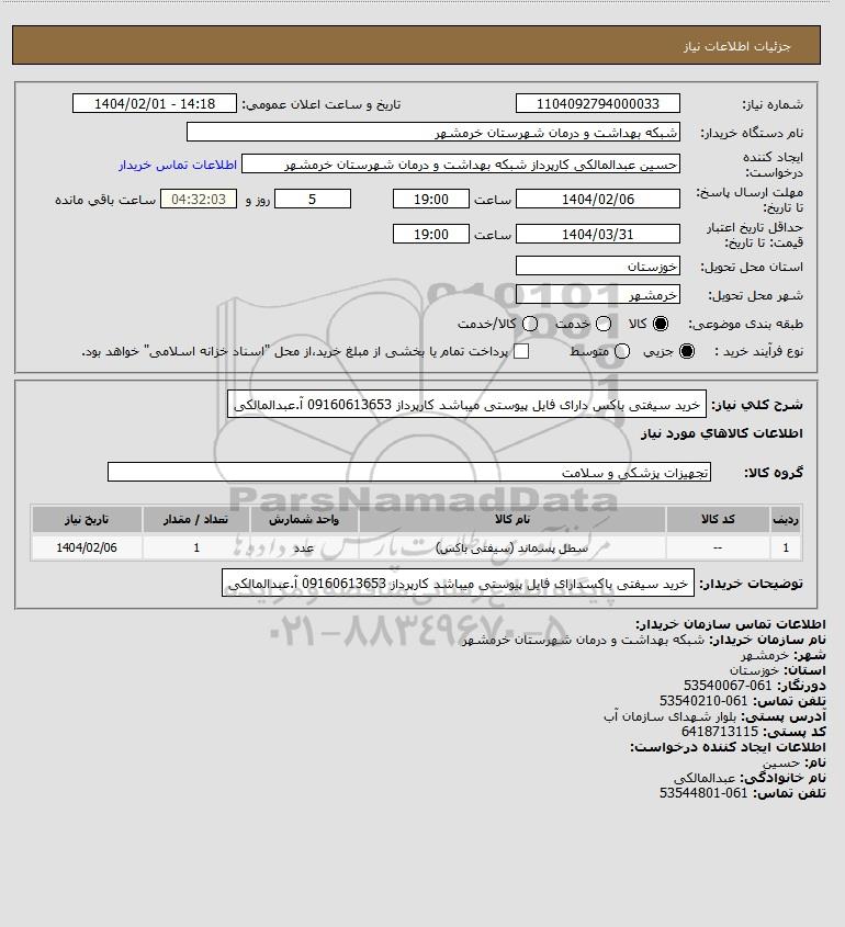 نام دستگاه خریدار:شبکه بهداشت و درمان شهرستان خرمشهر