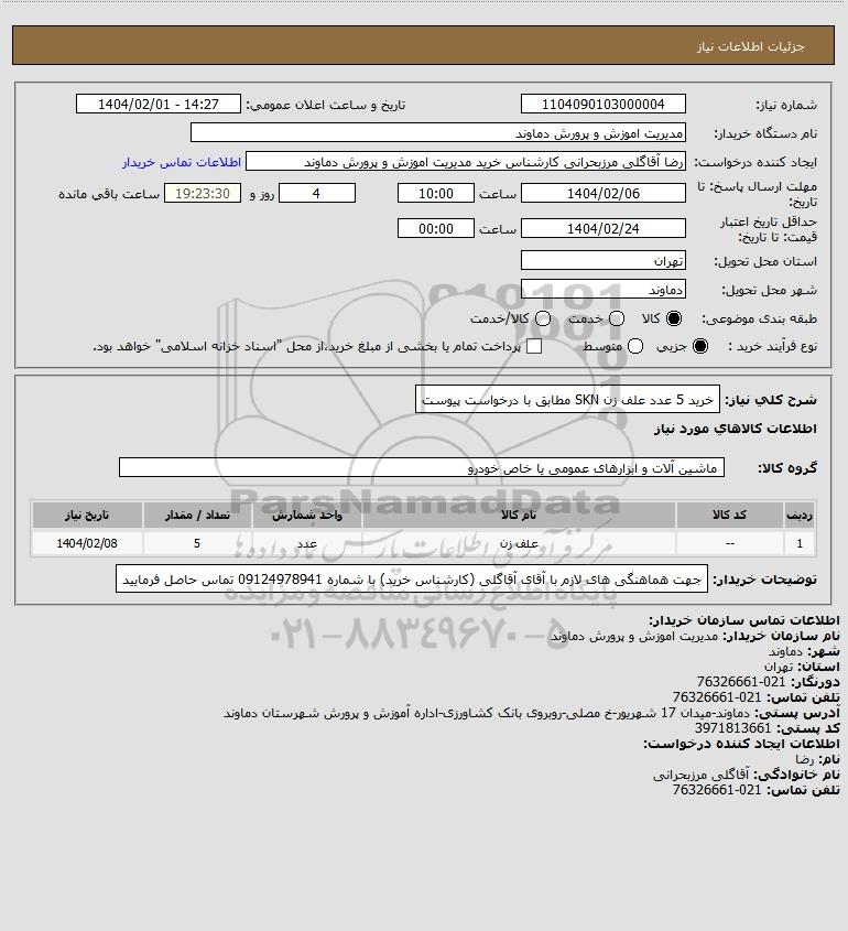 نام دستگاه خریدار:مدیریت اموزش و پرورش دماوند