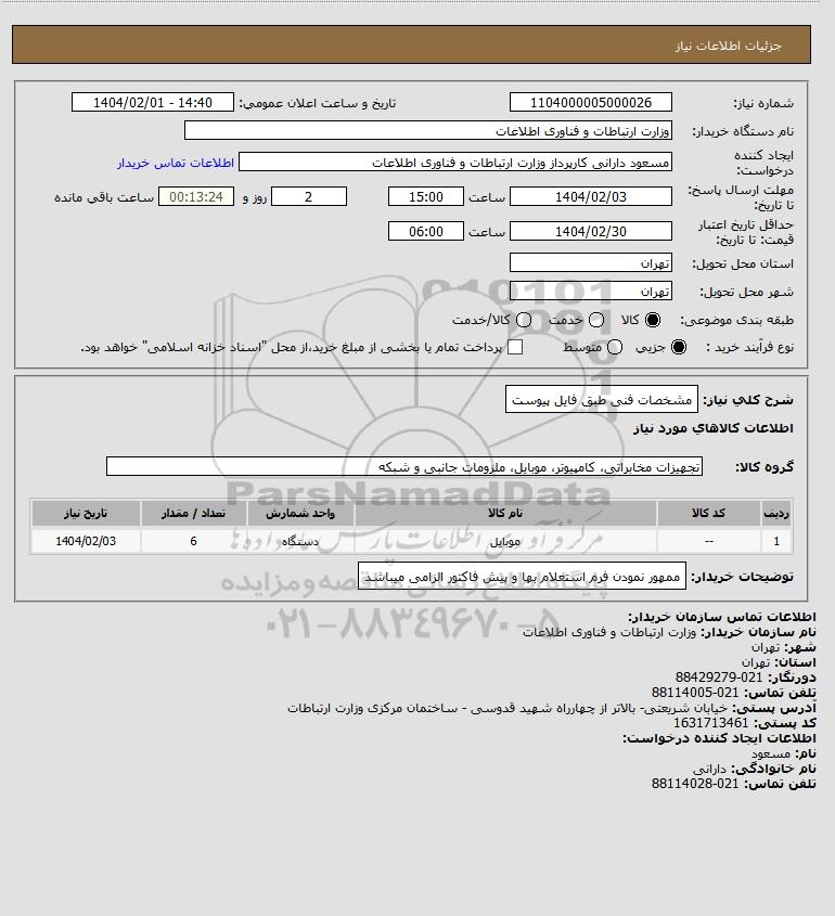 نام دستگاه خریدار:وزارت ارتباطات و فناوری اطلاعات