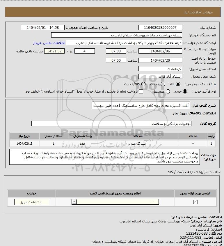 نام دستگاه خریدار:شبکه بهداشت درمان شهرستان اسلام ابادغرب