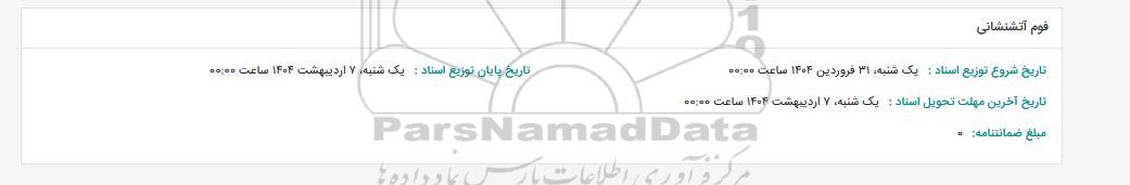 تاریخ آخرین مهلت تحویل اسناد: یک شنبه، 7 اردیبهشت 1404 ساعت 00:00