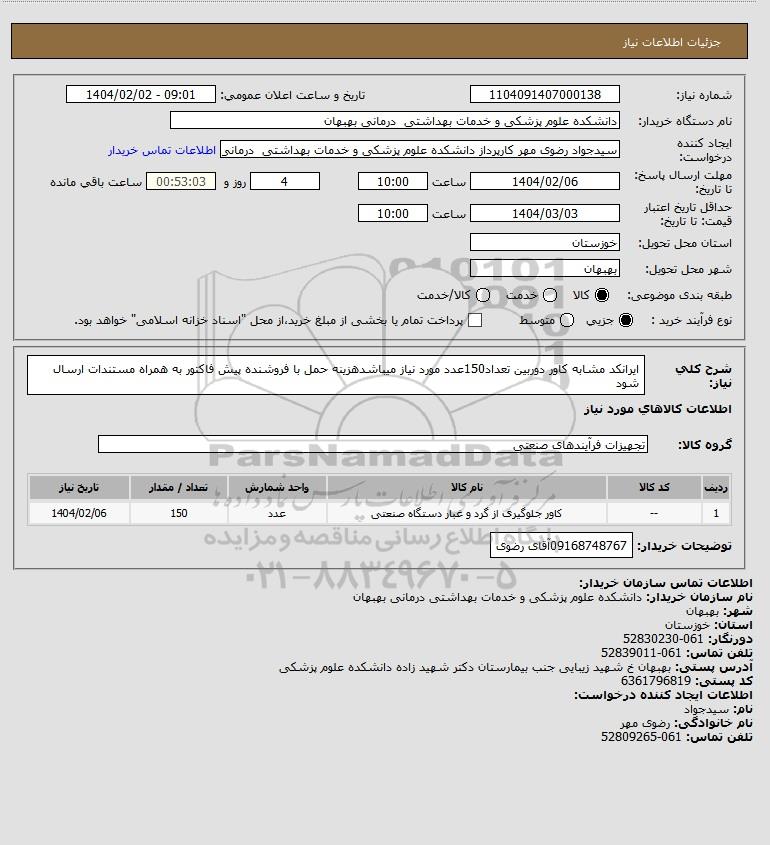 نام دستگاه خریدار:دانشکده علوم پزشکی و خدمات بهداشتی درمانی بهبهان