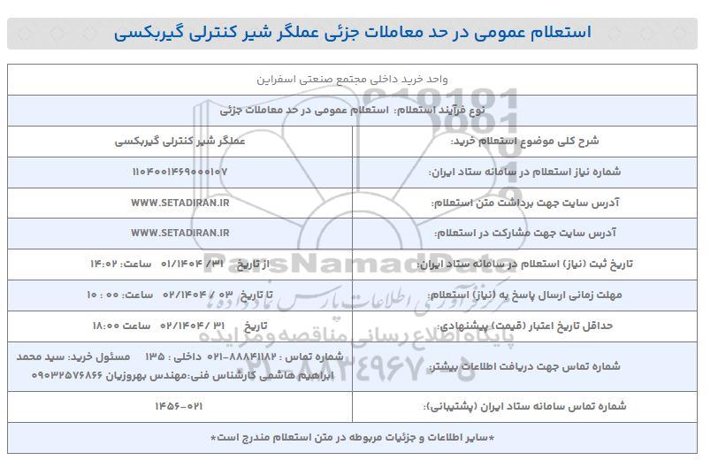 استعلام عمومی در حد معاملات جزئی عملگر شیر کنترلی گیربکسی