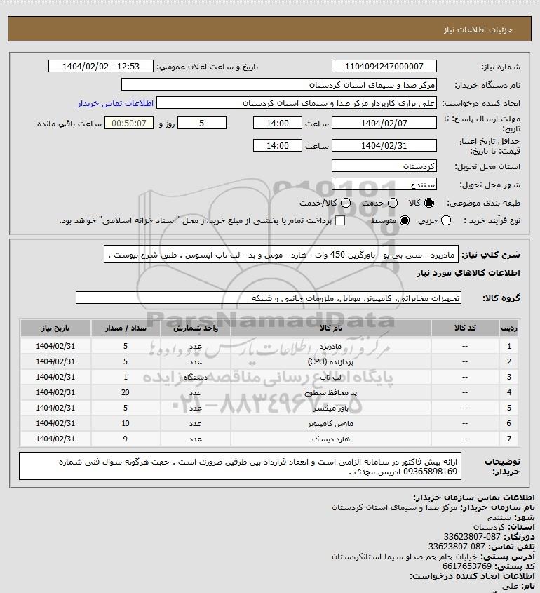 نام دستگاه خریدار:مرکز صدا و سیمای استان کردستان