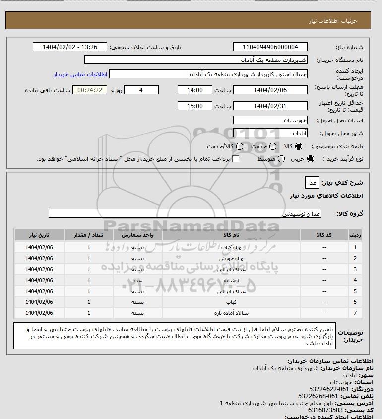 | 5 | -- | غذای ایرانی | بسته | 1 | 1404/02/06 |