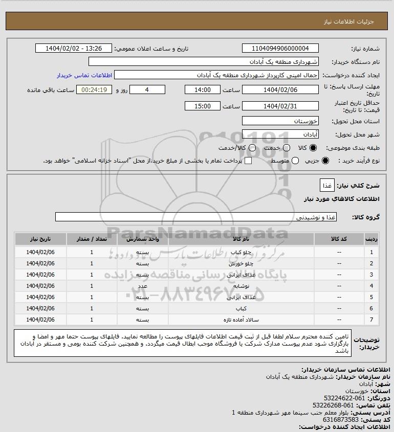 نام دستگاه خریدار:شهرداری منطقه یک آبادان