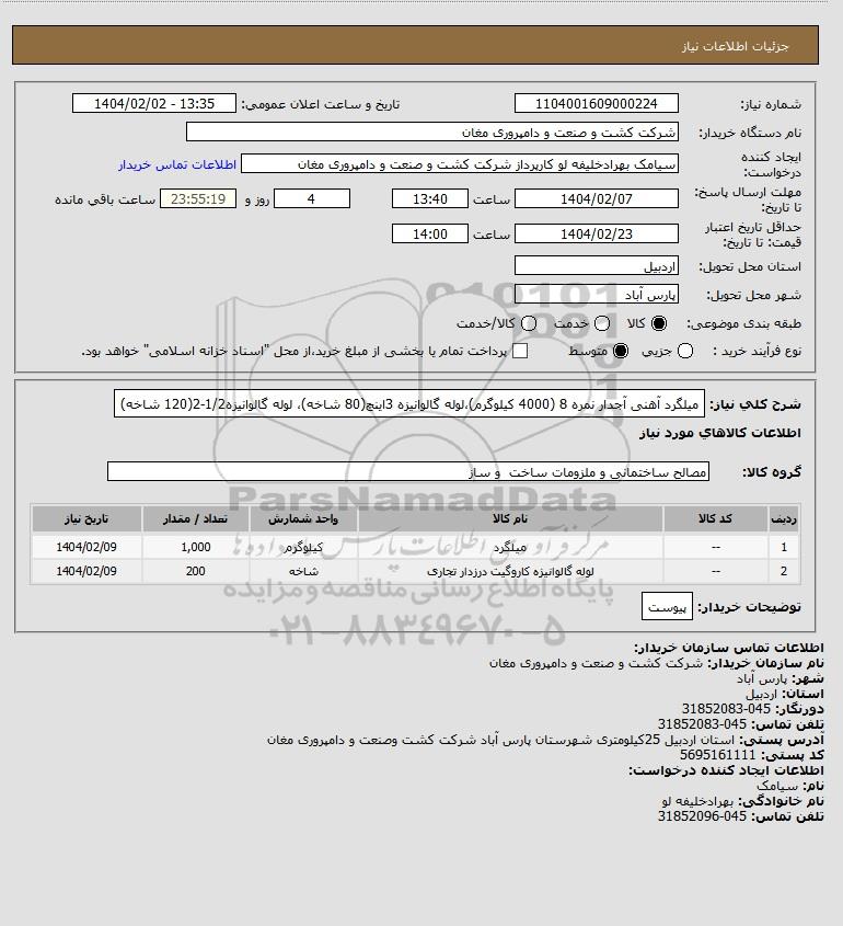 | 2 | -- | لوله گالوانیزه کاروگیت درزدار تجاری | شاخه | 200 | 1404/02/09 |