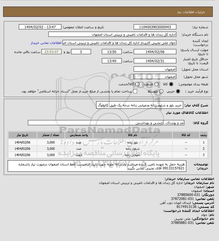 استعلام خرید بلوز و شلوار زنانه ودمپایی زنانه درجه یک طبق کاتولوگ, استعلام خرید بلوز و شلوار زنانه ودمپایی زنانه درجه یک طبق کاتولوگ