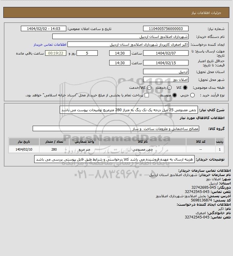 نام دستگاه خریدار:شهرداری اصلاندوز استان اردبیل