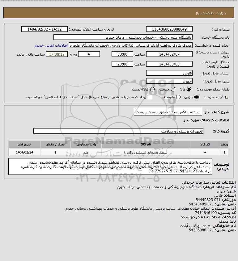 شرح کلی نیاز: سیفتی باکس مختلف طبق لیست پیوست