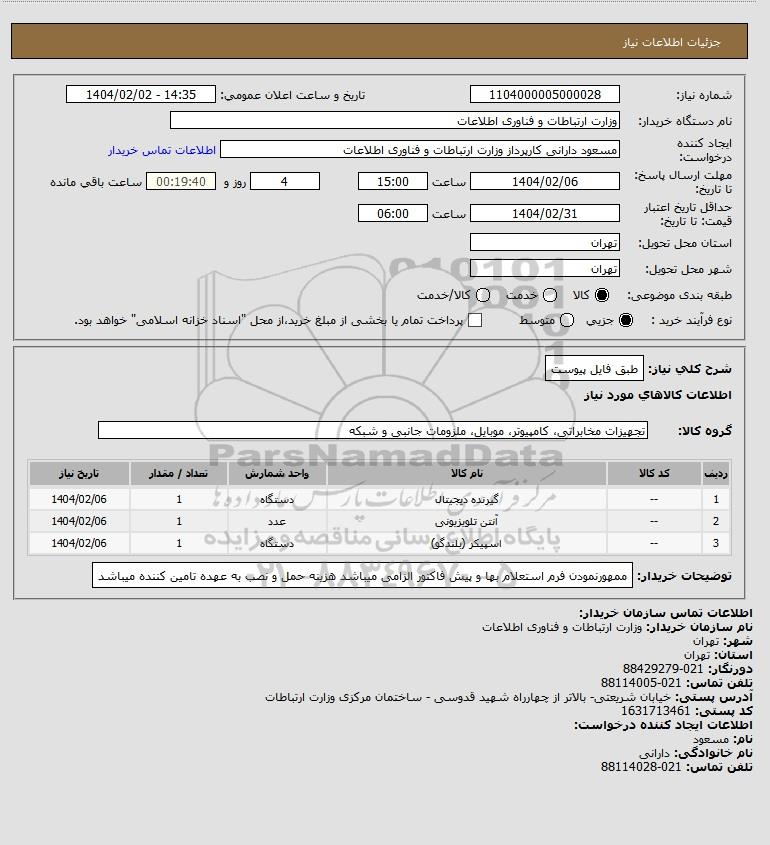 نام دستگاه خریدار:وزارت ارتباطات و فناوری اطلاعات