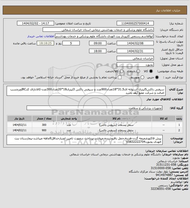 نام دستگاه خریدار:دانشگاه علوم پزشکی و خدمات بهداشتی درمانی استان خراسان شمالی