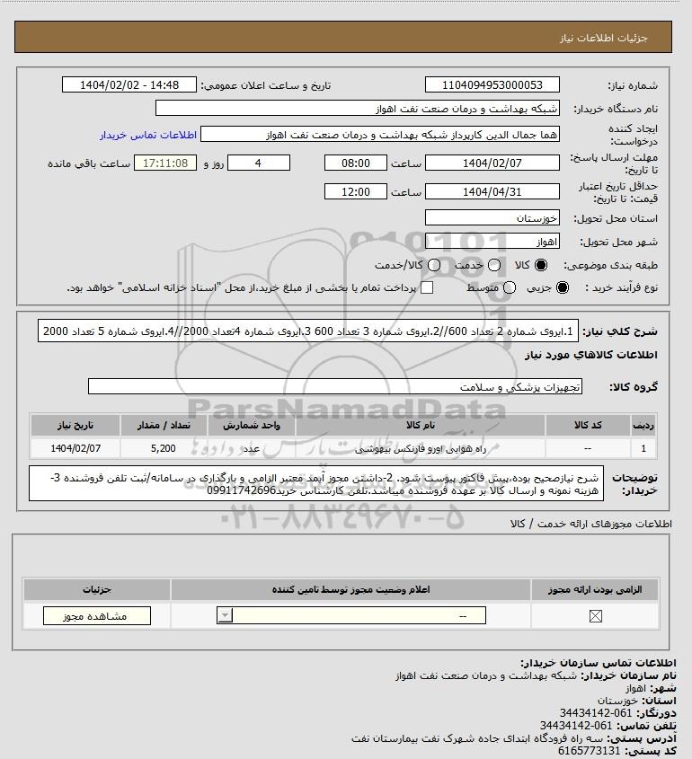 نام دستگاه خریدار:شبکه بهداشت و درمان صنعت نفت اهواز