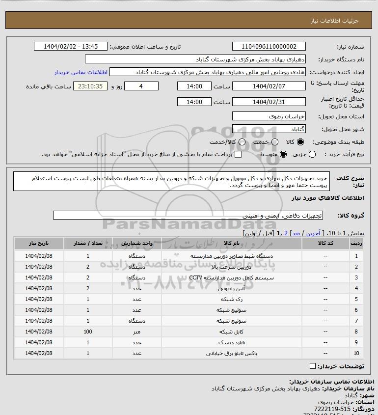 شرح کلی نیاز: خرید تجهیزات دکل مهاری و دکل مونوپل و تجهیزات شبکه و دروبین مدار بسته همراه متعلقات طی لیست پیوست